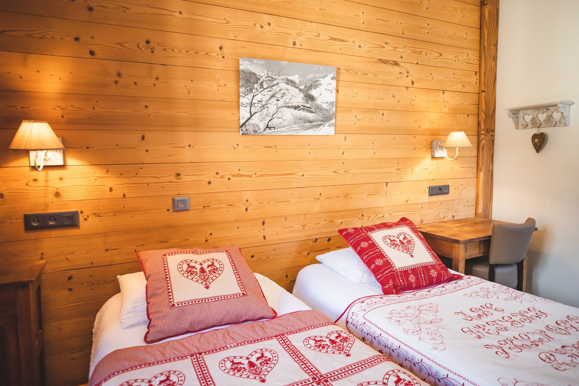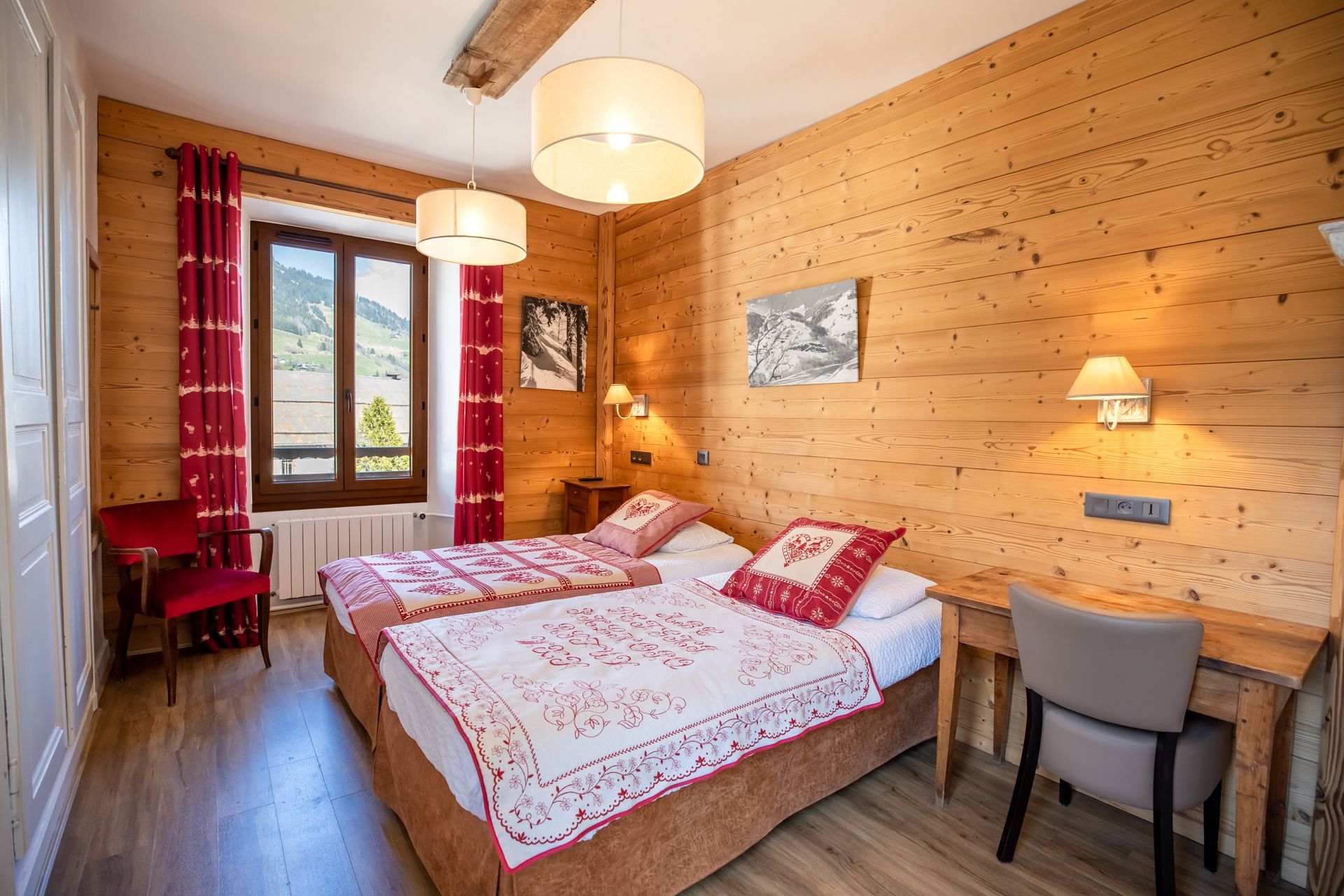 Bathed in light thanks to its 2 windows, with a pleasant view of the bell tower and the mountains, two 90 cmx190 cm (34x75 in) beds or a king-size 180 cm (71 in) bed to give you all the space you need to make sweet dreams.