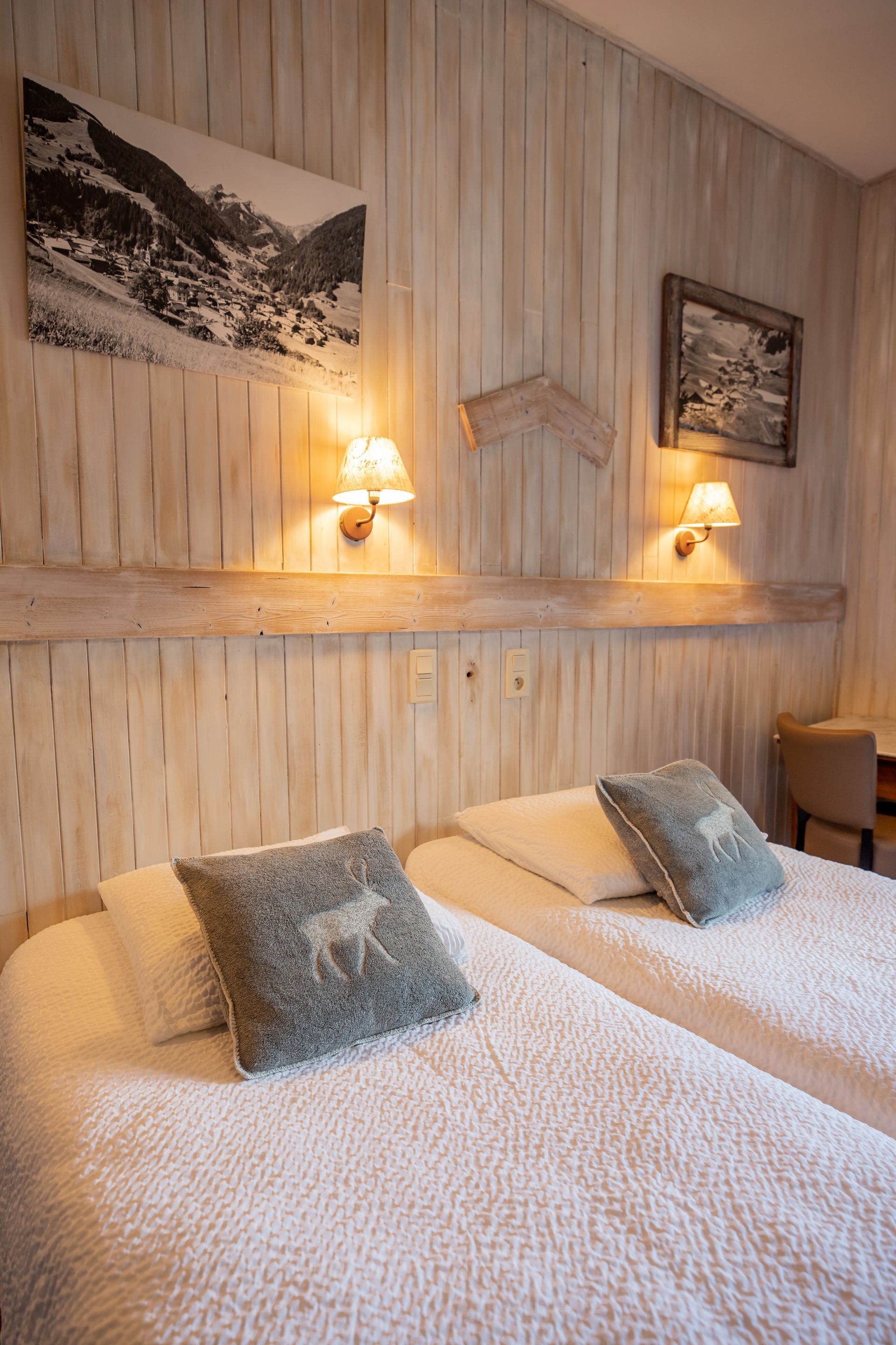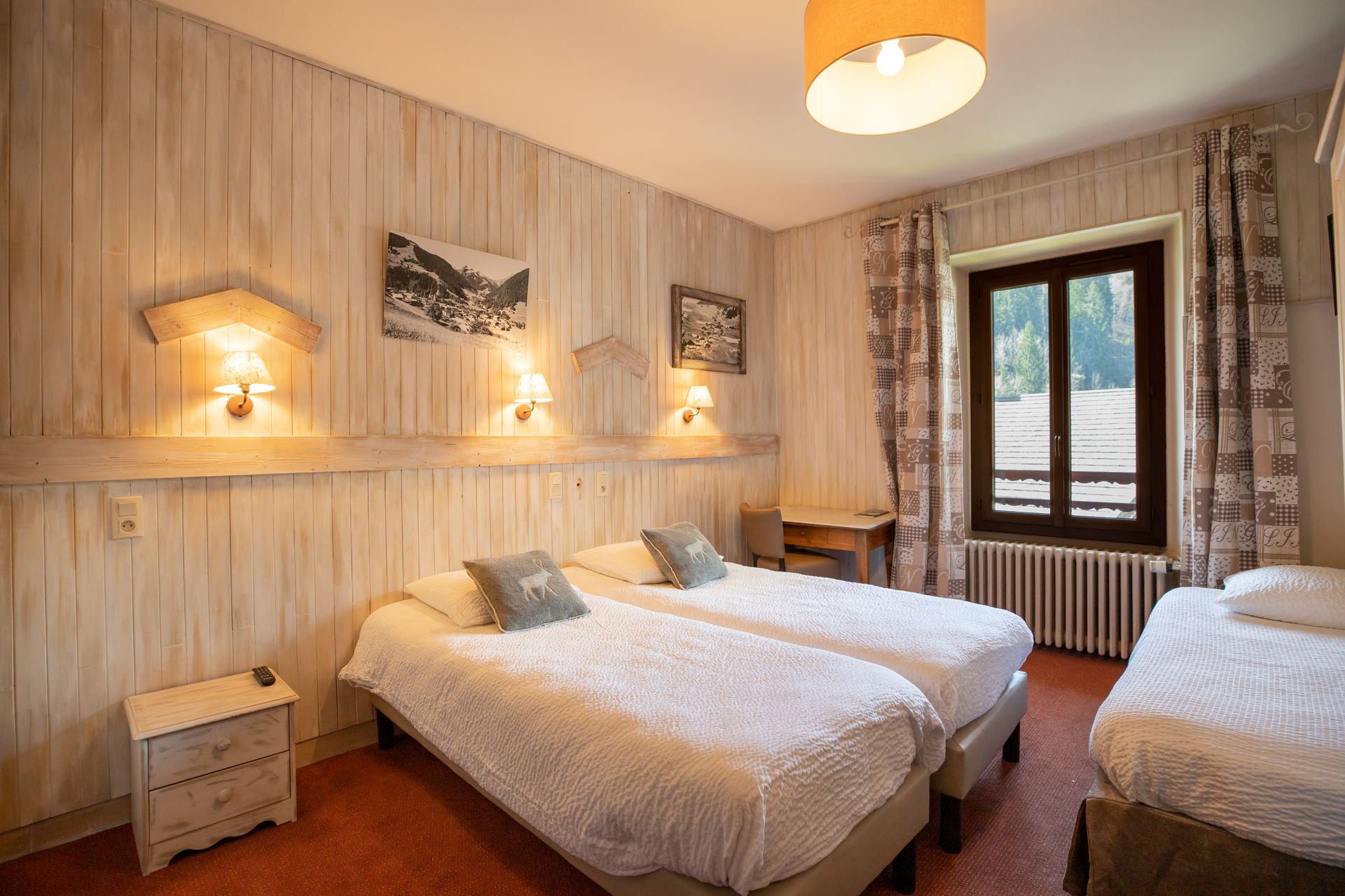 A comfortable, bright room with 3 cosy beds, a view of the garden and mountains, and peace and quiet.