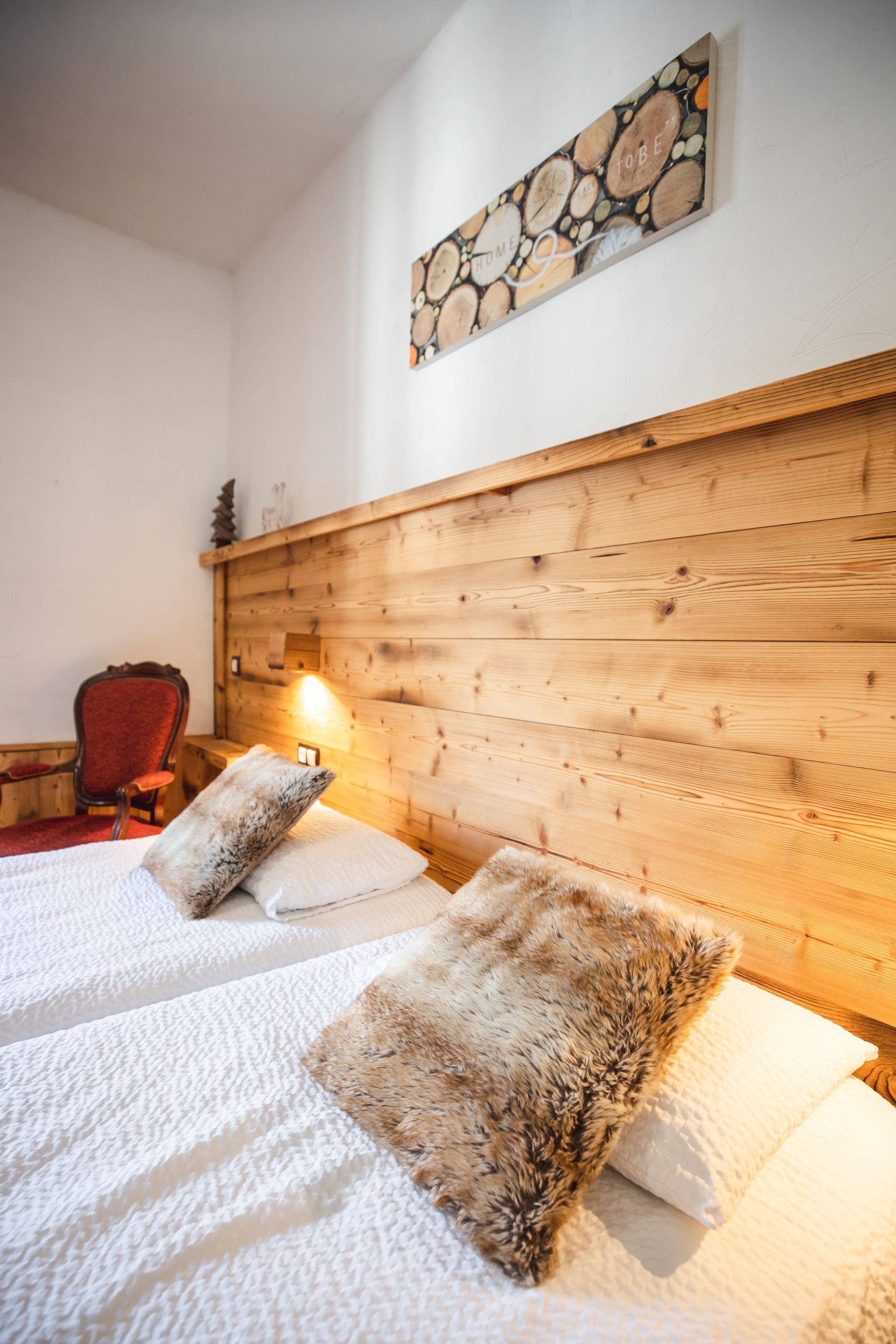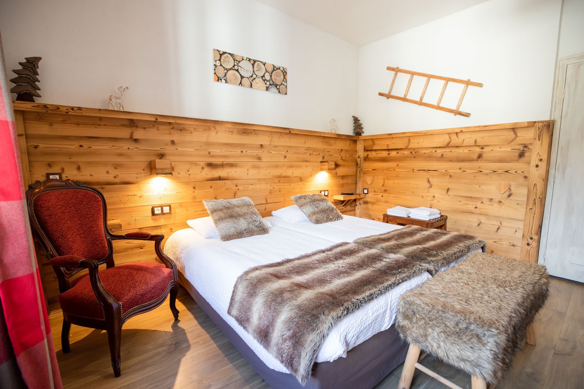 Un espace privé de 32 m² pour que chacun puisse se détendre au calme, 2 chambres séparées avec 2 lits 90x190 cm ou un grand lit double en180 cm, un balcon privatif pour se délasser au soleil façe à la vue du village authentique d'Arêches.